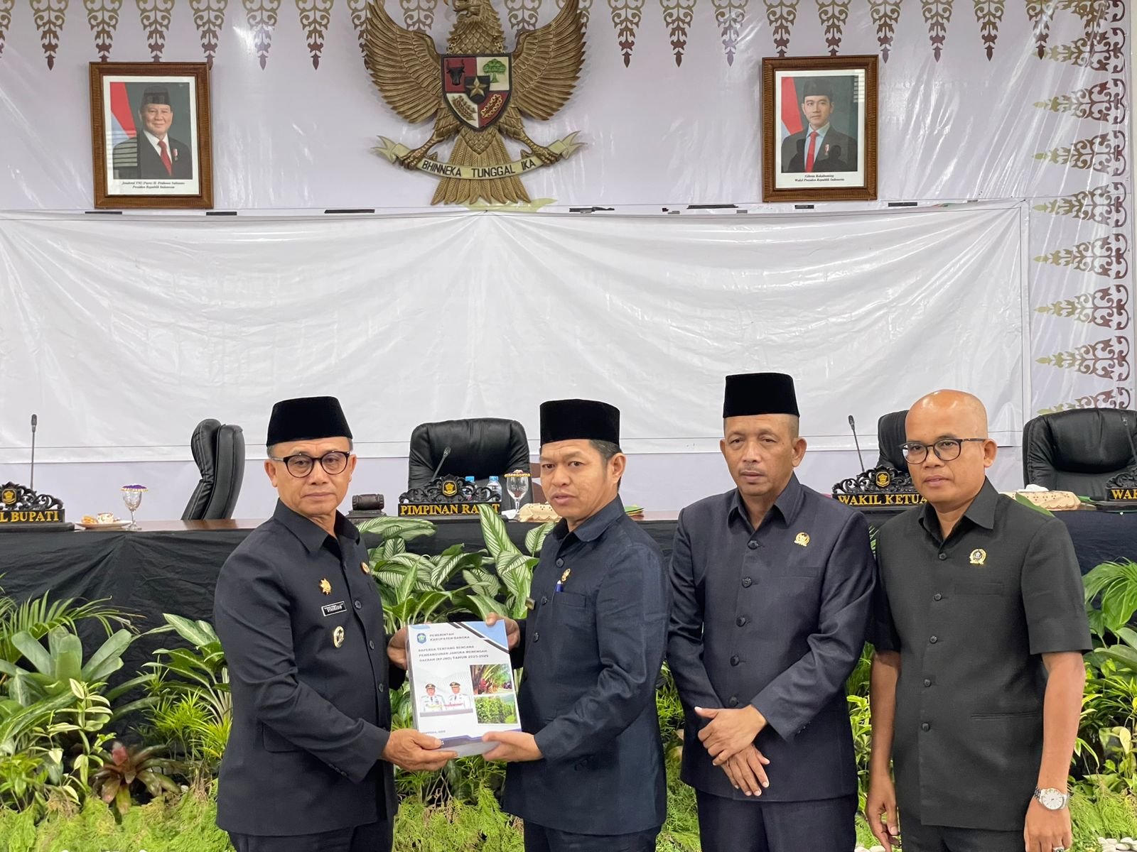 (Foto : Rapat paripurna penyerahan Raperda RPJMD TA 2025-2029 dari Wakil Bupati Bangka Syahbudin kepada pimpinan DPRD Kabupaten Bangka. edw)