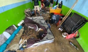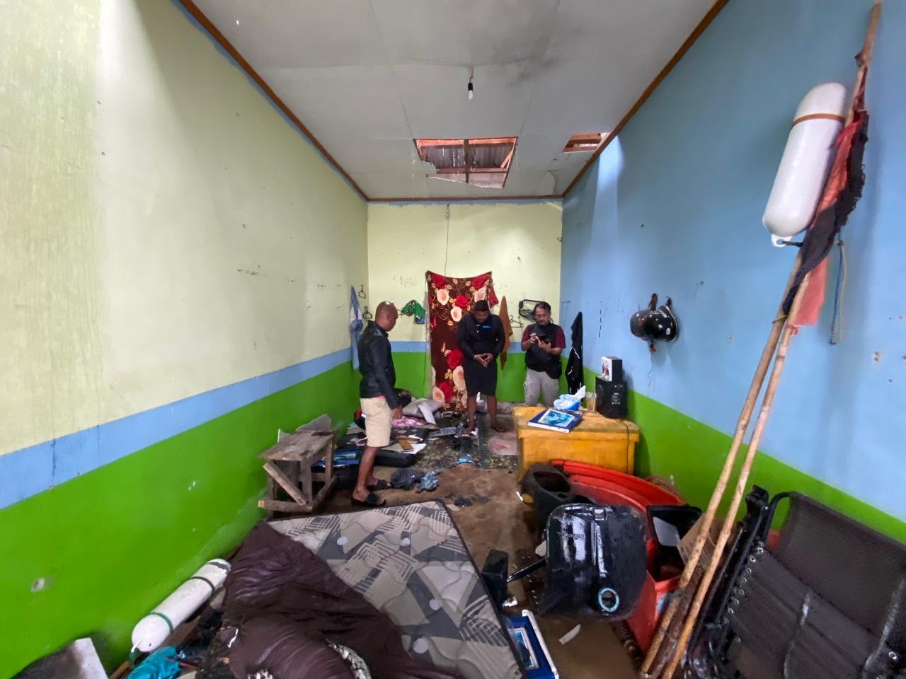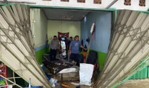 Kerusakan material meliputi plafon, atap, pintu rolling door, dan sejumlah perabotan, dengan kerugian ditaksir sekitar Rp 6 juta.