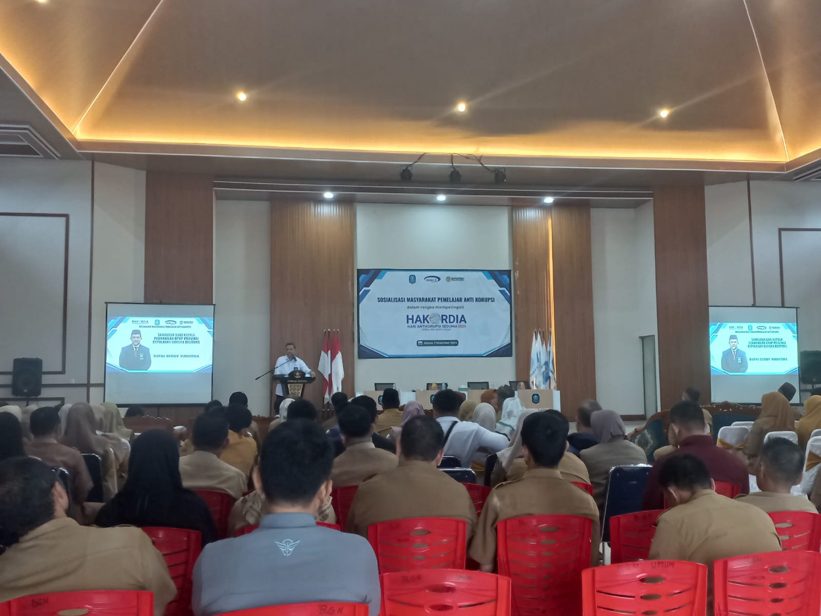FORKODABABEL.COM, BANGKA — Dalam rangka memperingati Hari Anti Korupsi Sedunia (Hakordia), Perwakilan BPKP Provinsi Kepulauan Babel dan Inspektorat Kabupaten Bangka menggelar sosialisasi anti korupsi kepada seluruh kepala desa, sekretaris dan bendahara desa di lingkungan Pemkab Bangka di Graha Maras Kantor Bupati Bangka, Selasa (09/12/2025).