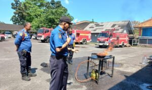 Sosialisasi dipimpin langsung Plt Kabid Damkar Satpol PP Bangka, Zalfika Ammya yang dibantu anggota satuan Damkar yang melakukan reka adegan.