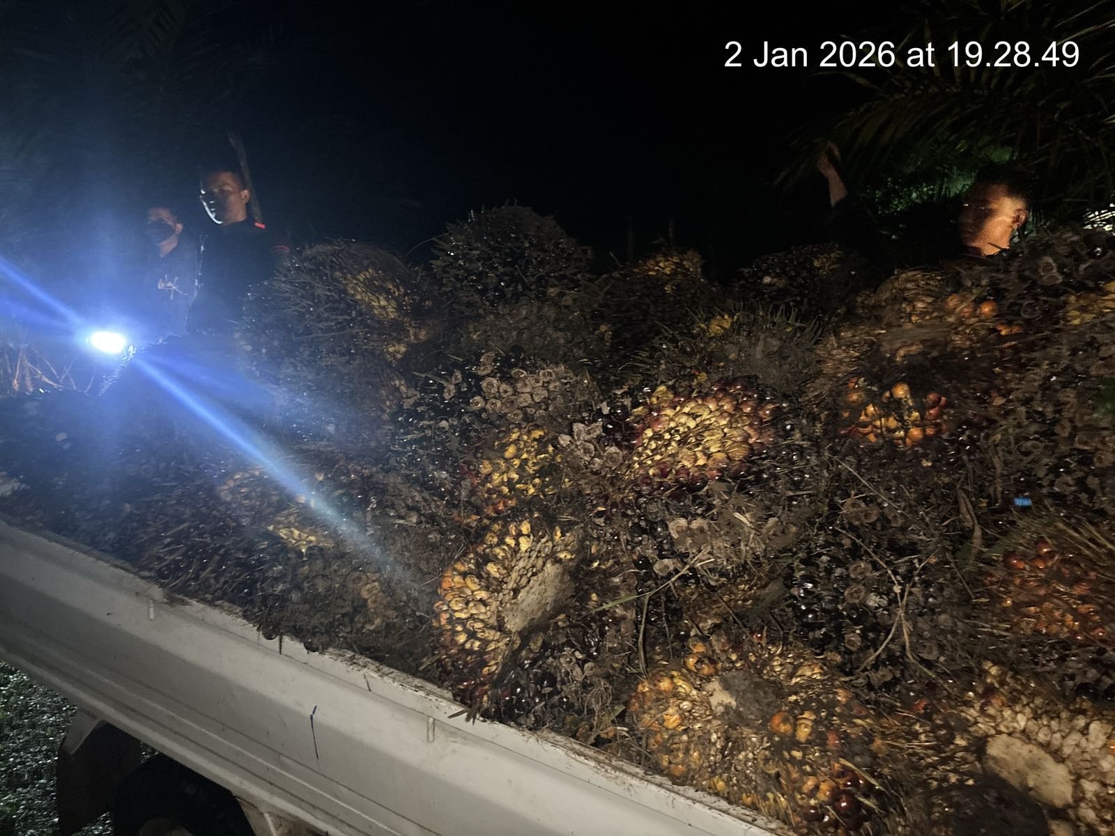 Dalam penangkapan tersebut, polisi turut mengamankan barang bukti berupa 123 janjang tandan buah sawit, satu unit mobil Suzuki Carry, satu unit sepeda motor, alat panen sawit, telepon genggam, serta barang-barang lain yang digunakan pelaku saat beraksi.