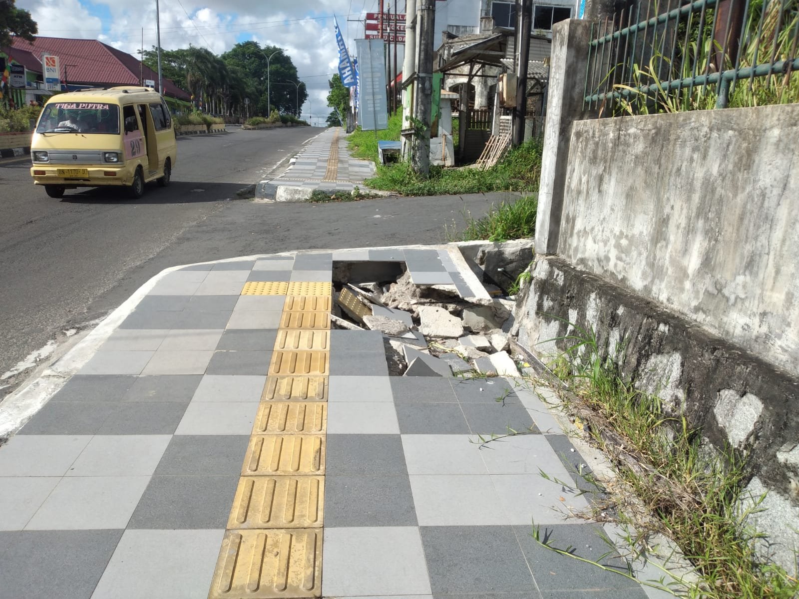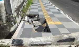 “Sedangkan trotoar berlobang yang dekat Bank BNI diduga ditabrak kendaraan sehingga rusak dan berlobang ,” katanya.