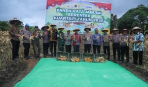FORKODABABEL.COM, BANGKA — Dalam rangka mendukung program pemerintah terkait ketahanan pangan nasional, Polres Bangka melaksanakan kegiatan panen jagung serentak Kuartal I Tahun 2026, Kamis (08/01/2026) di Desa Tiangtarah, Kecamatan Bakam, Kabupaten Bangka.