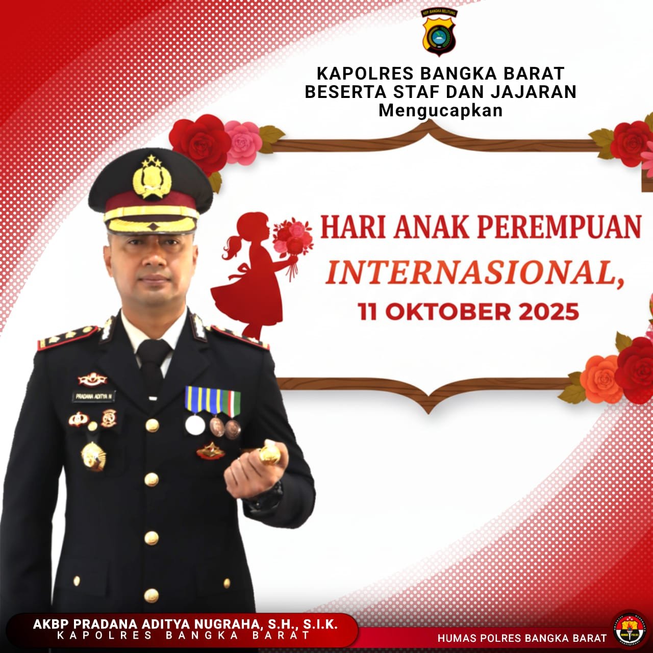 FORKODABABEL.COM, BANGKA BARAT — Menjelang peringatan Hari Anak Perempuan Internasional yang jatuh pada 11 Oktober 2025, Kapolres Bangka Barat (Babar) AKBP Pradana Aditya Nugraha, S.H., S.I.K. menyerukan pentingnya perlindungan dan pemberdayaan terhadap anak perempuan di Kabupaten Bangka Barat.
