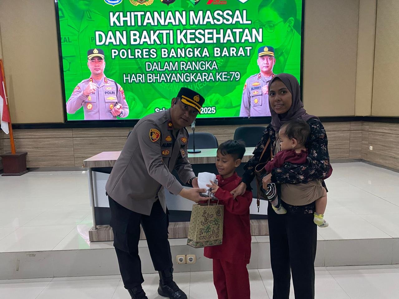 FORKODABABEL.COM, BANGKA BARAT –– Dalam rangka memperingati HUT ke-79 Bhayangkara, Polres Bangka Barat (Babar) menggelar Khitanan (Sunatan) Massal dan Bakti Kesehatan di Gedung Catur Prasetya Polres Bangka Barat, Selasa (24/06/2025).