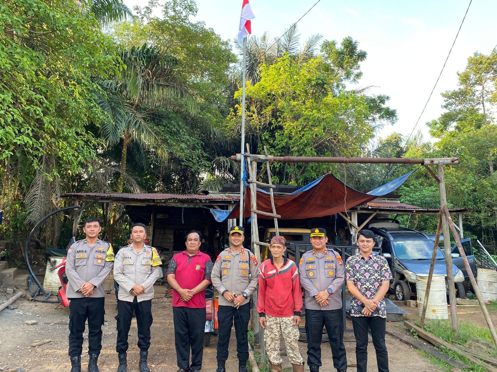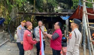 Dengan didampingi para pejabat utama, AKBP Pradana Aditya Nugraha berjalan menyusuri pemukiman warga, menyapa dan menyerahkan langsung Bendera Merah Putih ke tangan masyarakat.