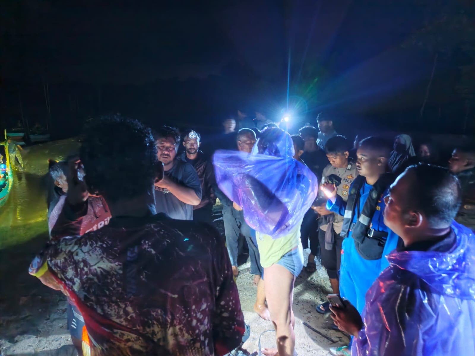 Hingga sekitar pukul 18.30 WIB, tim gabungan melihat cahaya senter di tengah perairan.