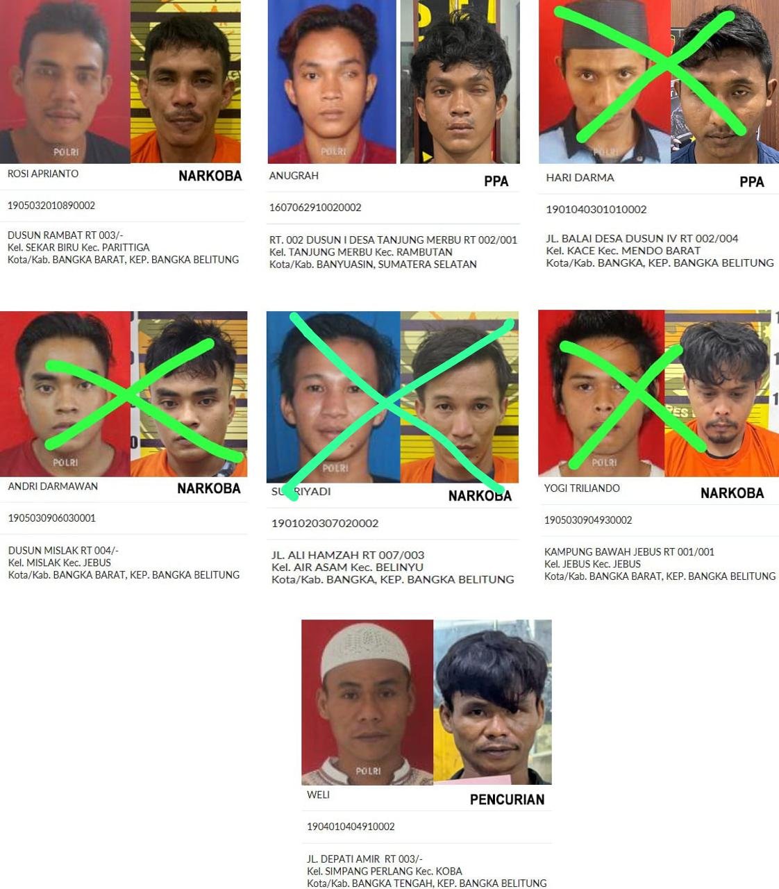 (Foto : Para tahanan Polres Bangka yang kabur. IST/ Humas Polres Bangka)
