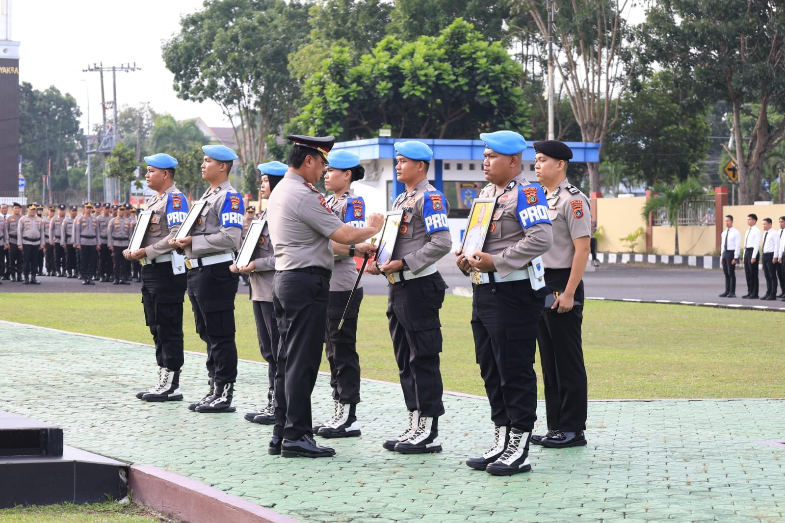 Namun, upacara tetap dilangsungkan secara in absentia dengan membawakan foto anggota yang dihadapkan kepada Kapolda Babel untuk diberikan tanda silang.