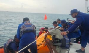 (Foto : Sat Polairud Polres Bangka dan tim gabungan evakuasi nelayan yang tersambar petir. IST/Humas Polres Bangka)