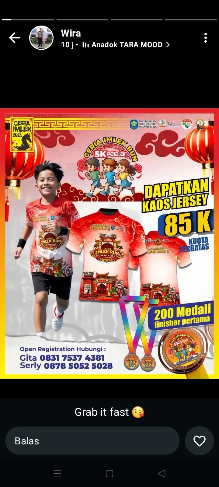 ” Perlombaan ini telah menarik antusiasme tinggi sejak pendaftaran dibuka tiga hari lalu, dengan jumlah peserta yang terdaftar saat ini mencapai sekitar 200 orang,” kata Wira saat ditemui di Kantor Bupati Bangka, Rabu (04/02/2026).