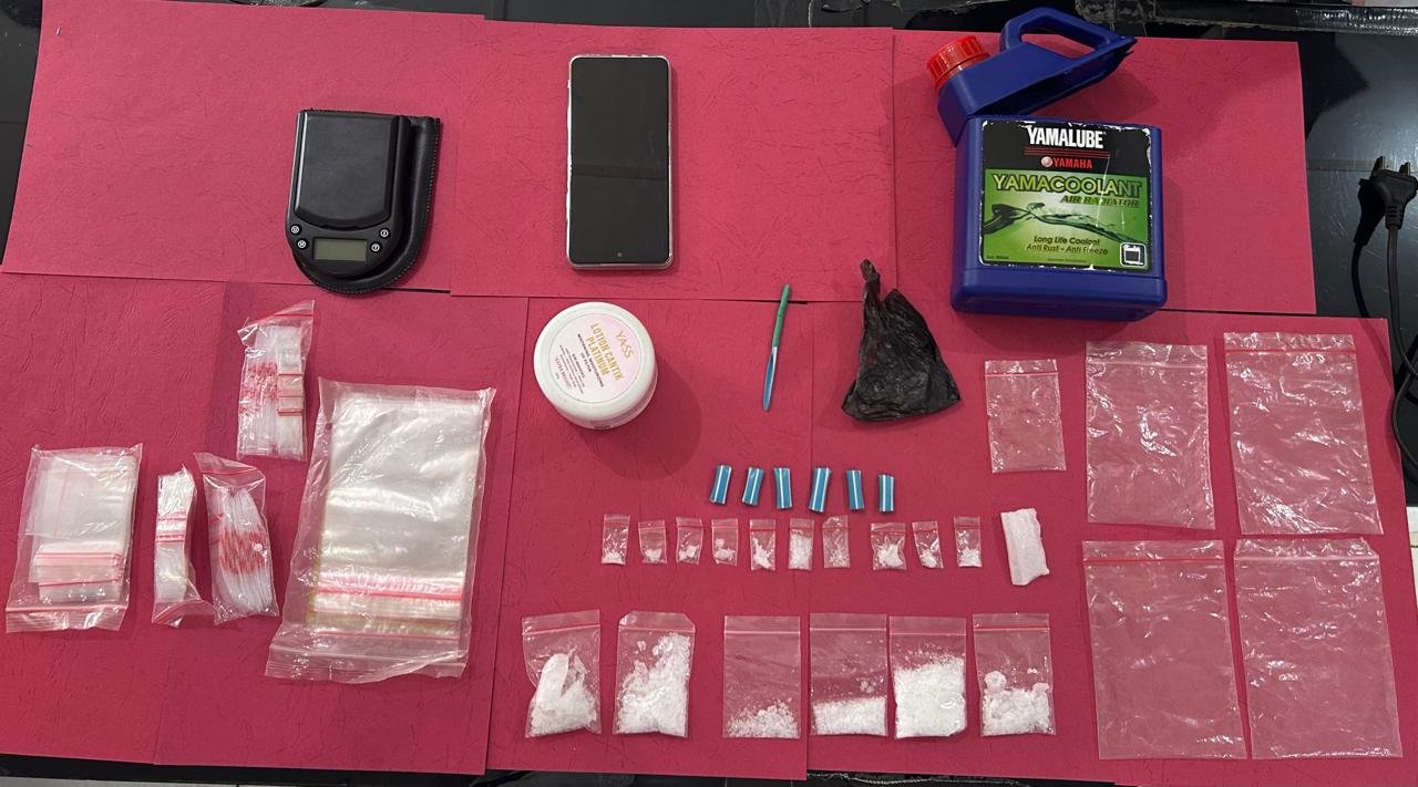 Selain sabu, sejumlah barang yang diduga kuat berkaitan dengan aktivitas peredaran narkotika turut diamankan, di antaranya timbangan digital, alat kemasan, handphone, sepeda motor, hingga perlengkapan pendukung lainnya.