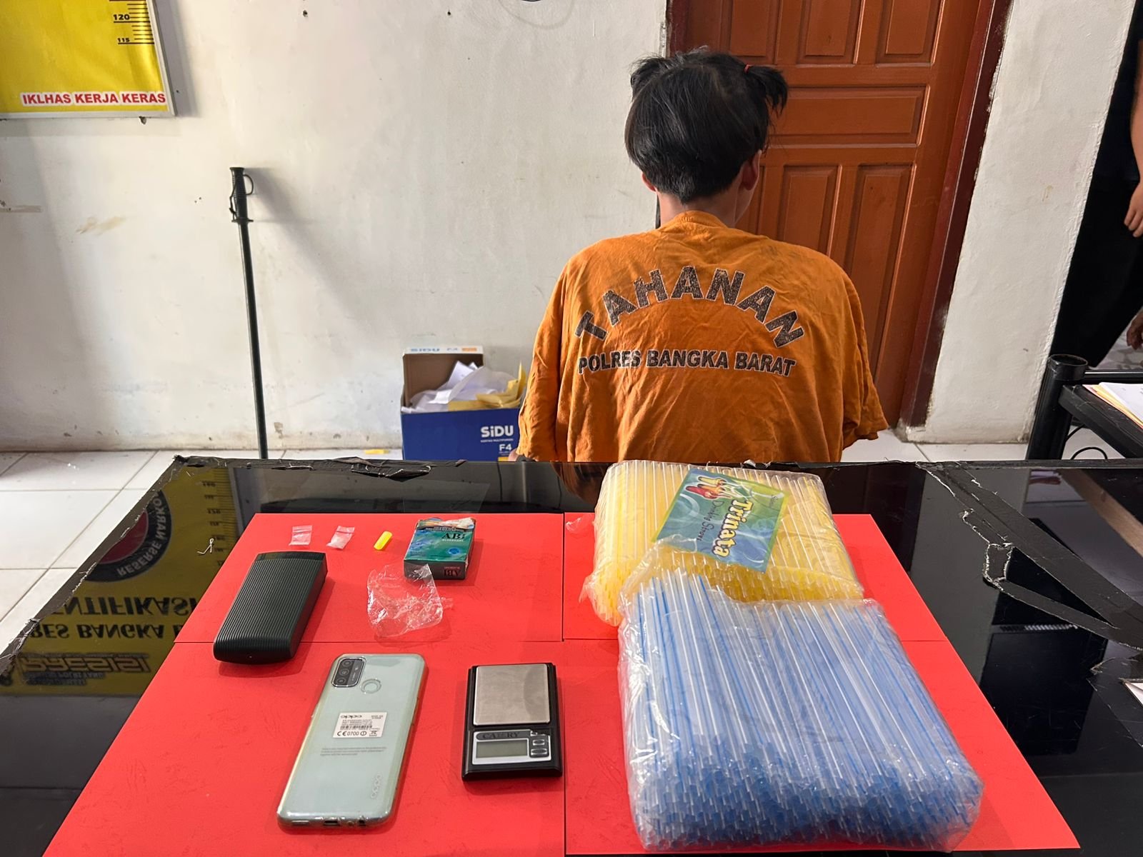 Selain itu, turut diamankan satu unit timbangan digital, potongan pipet dan plastik bening, dua bungkus sedotan besar, satu unit telepon genggam, serta satu unit sepeda motor yang diduga digunakan untuk menunjang aktivitas peredaran.