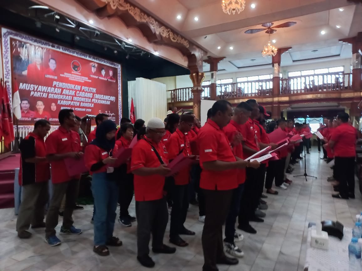(Foto : PDIP Provinsi Kepulauan Bangka Belitung (Babel) bersama DPC PDIP Kabupaten Bangka menggelar Pendidikan Politik Musyawarah Anak Cabang (Musancab) dan melantik para Pengurus Anak Cabang (PAC) seluruh Kecamatan di wilayah Kabupaten Bangka. Edw)