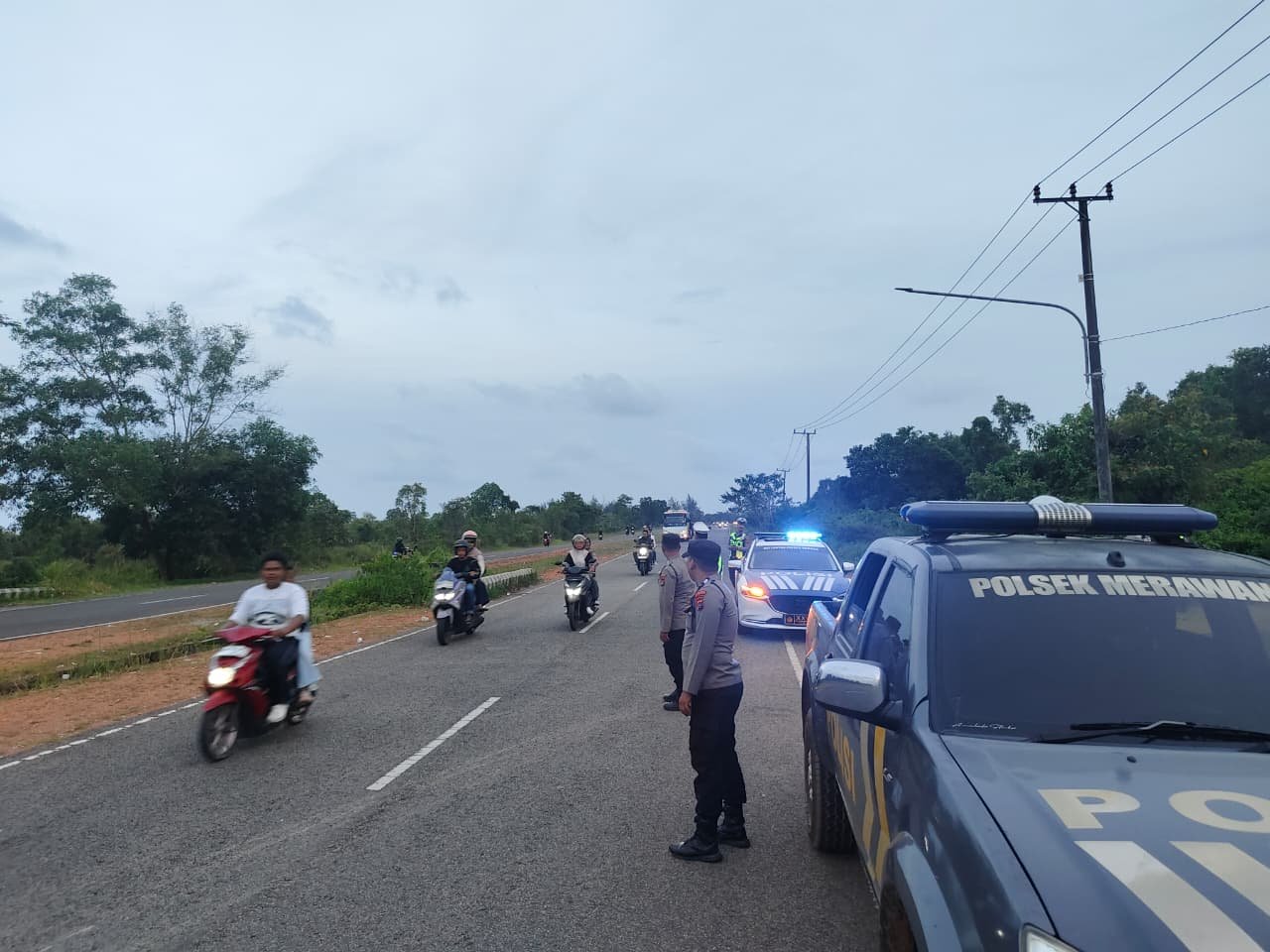 Patroli dipimpin langsung oleh Kapolsek Merawang IPTU M. Ryan Nofiandy bersama personel Sat Lantas Polres Bangka dan personel Polsek Merawang.