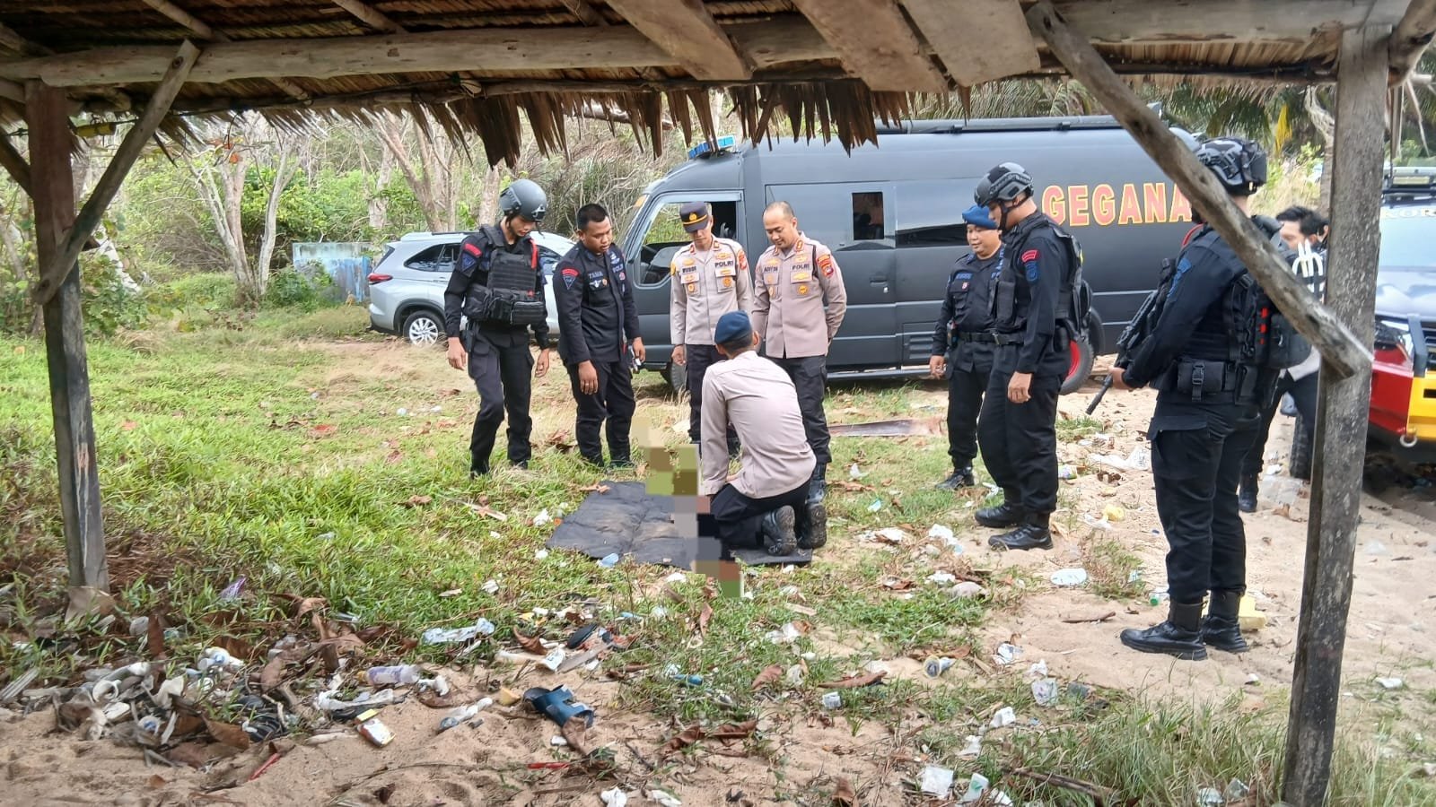 Tim Jibom yang dipimpin Ipda Landi tiba di lokasi pada sore hari dan melakukan identifikasi.