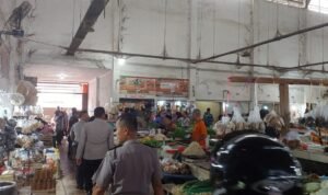 (Foto : Sat Binmas Polres Bangka melaksanakan kegiatan sambang dan himbauan Kamtibmas kepada masyarakat di Pasar Hiegenis Air Ruai. IST/ Humas Polres Bangka)