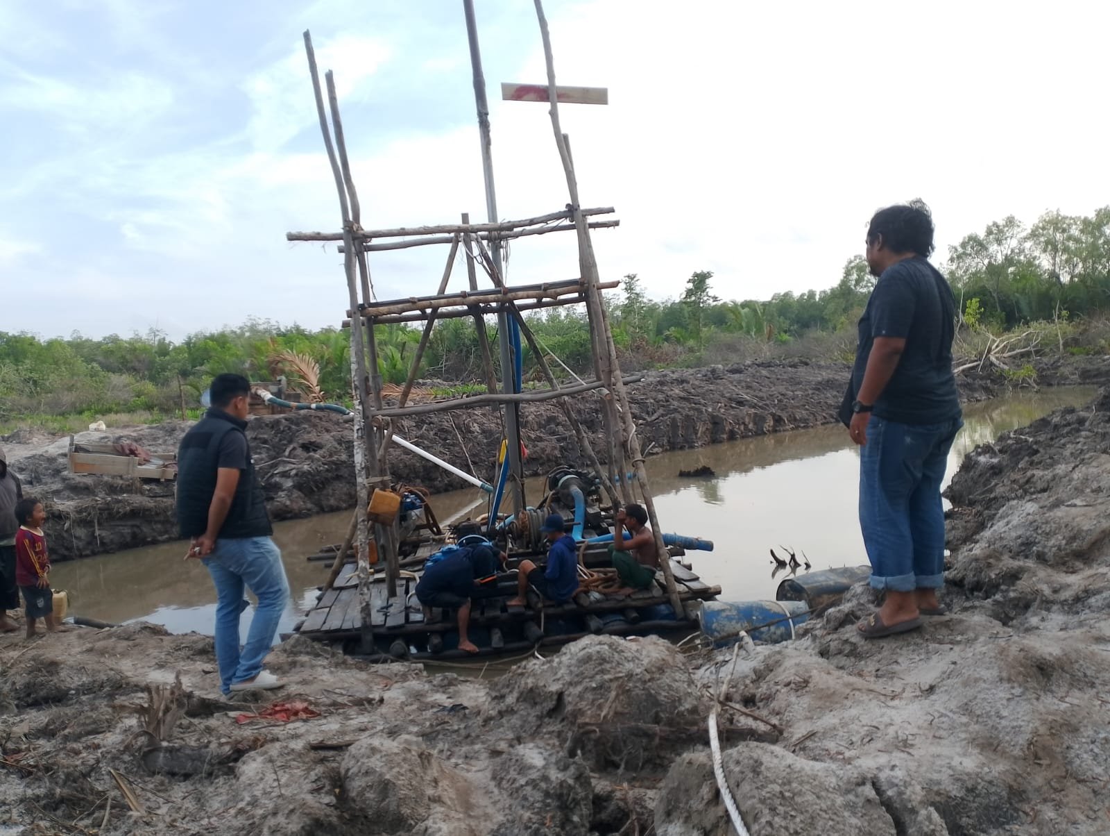 Polsek Belinyu melakukan penertiban terhadap aktivitas tambang timah jenis TI rajuk tower yang beroperasi di dekat pangkalan perahu nelayan Dusun Mengkubung, Desa Riding Panjang, Kecamatan Belinyu, Kabupaten Bangka, Rabu (11/03/2026) sore.
